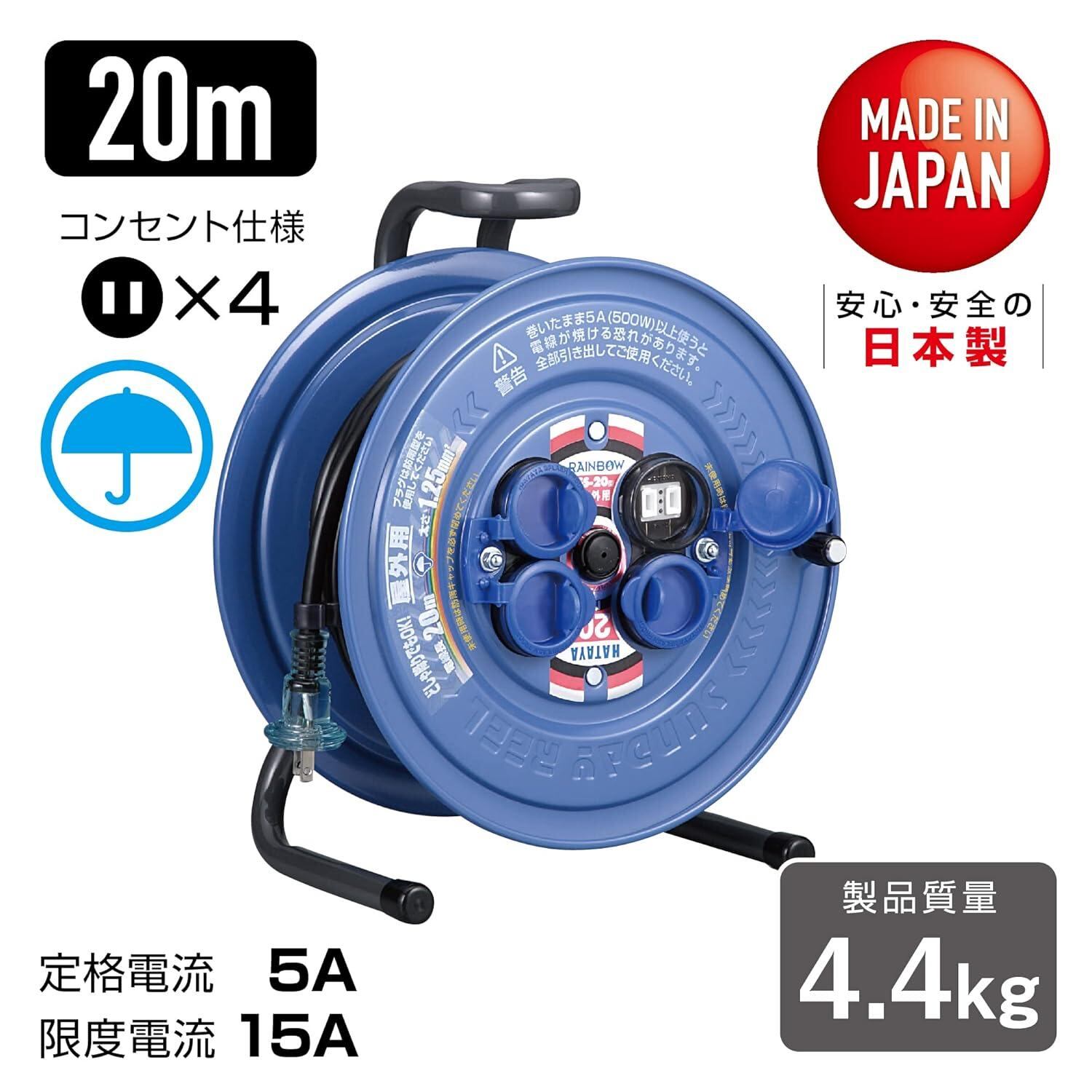 ハタヤHATAYA コードリール 防雨サンデーレインボーリール 15A 20m 屋外用 SS-20