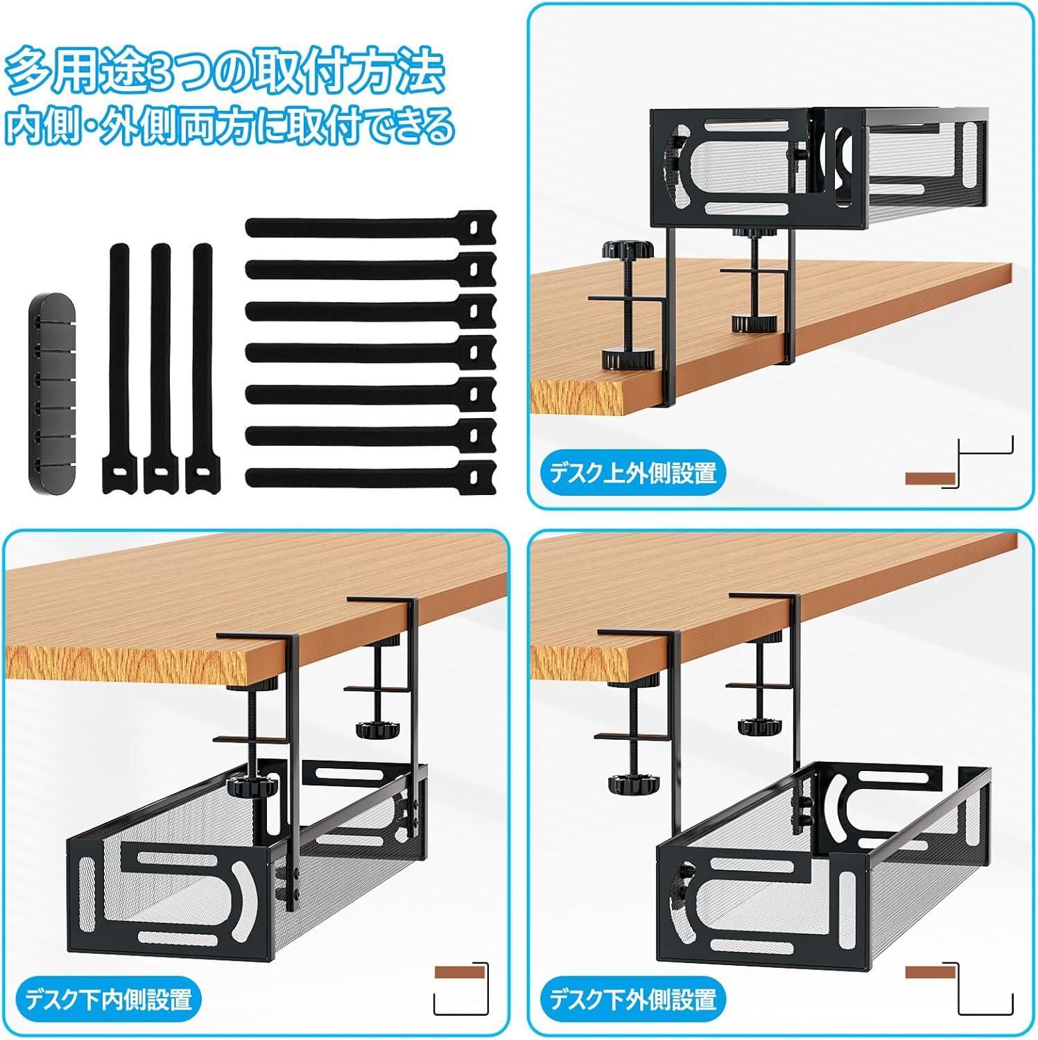 【スペースを効率化!スッキリ収納!】通気性と放熱性のよいデザイン!ホコリが溜まりにくいメッシュ設計。優れた通気性で機器の過熱を軽減します。デスク下のぐちゃぐちゃなケーブルや電源タップを効率的に収納。足元や机上のスッキリとした空間を取り戻します。ケーブルトレー クランプ、オフィス、書斎、台所、浴室などに適用可能です。文房具用品、小物収納、机 収納、机下 収納、リモコン、食器、化粧品など、さまざまな小物を収納できる優れた万能収納箱であり、どこに置くかわからない小物をきれいに収納することができます。