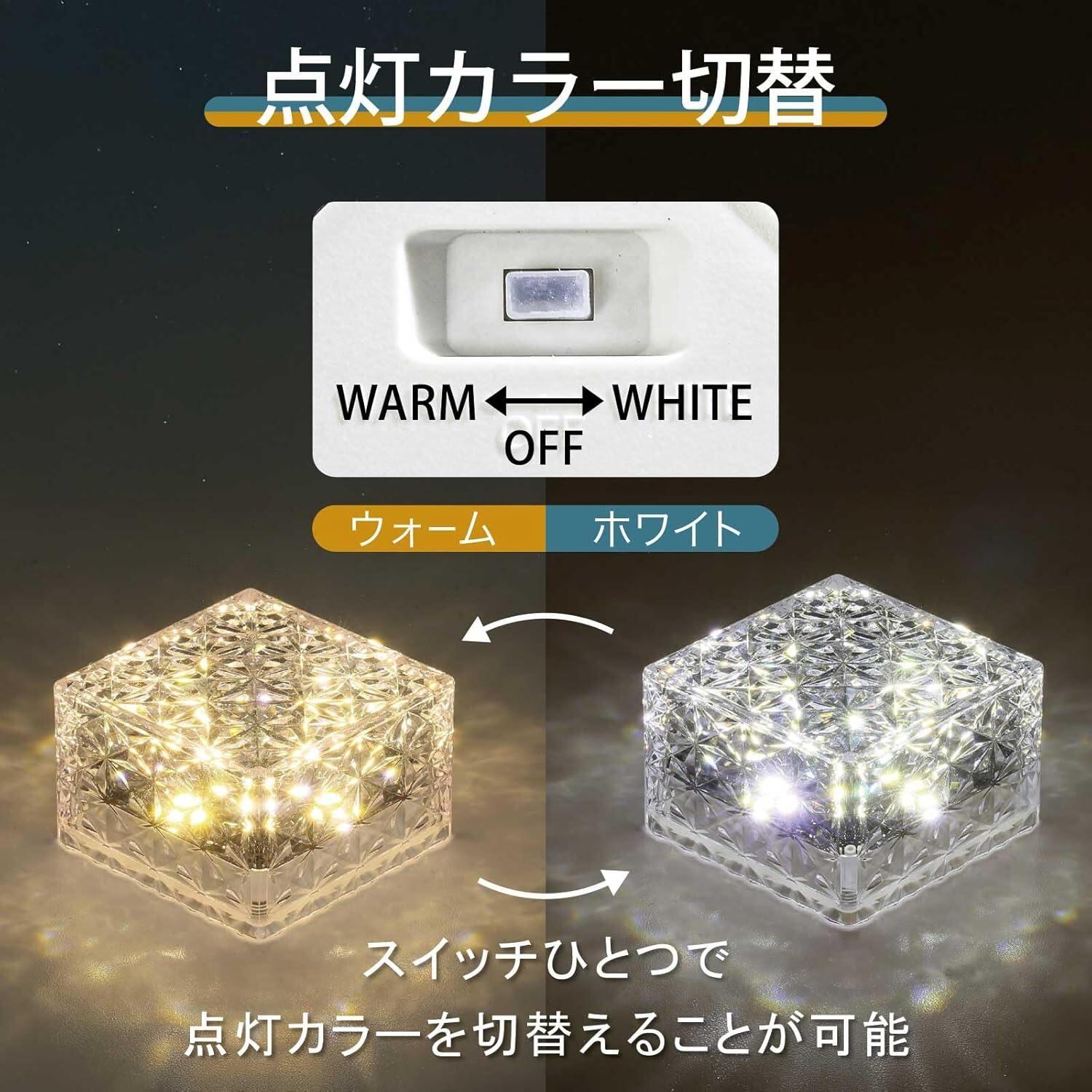 【製品仕様】 明るさ:5ルーメン、カラー WARM:3000K / WHITE:7000K、 リチウムイオン充電池:800mAh 1.2V、連続点灯:最大約10時間フル充電時、 防水性能 IP65、サイズ:幅70mm、奥行70mm、高さ 51mm、重量:140g/個、 【メーカー180日保証&充実のサポート】 操作などお困りの際はお気軽にお問い合わせ下さい。説明書記載のメールアドレスから販売店にご連絡ください。
