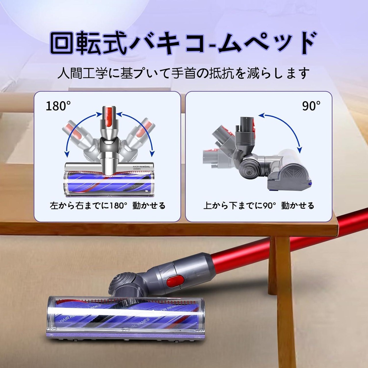 【耐久性のある構造】ダイソン ヘッド丈夫なABSプラスチックとナイロンブラシで作られ、耐久性があり、使用時間が長くなります。回転可能な設計で、180°柔軟に回転し、汚れや残留物をきれいにします。