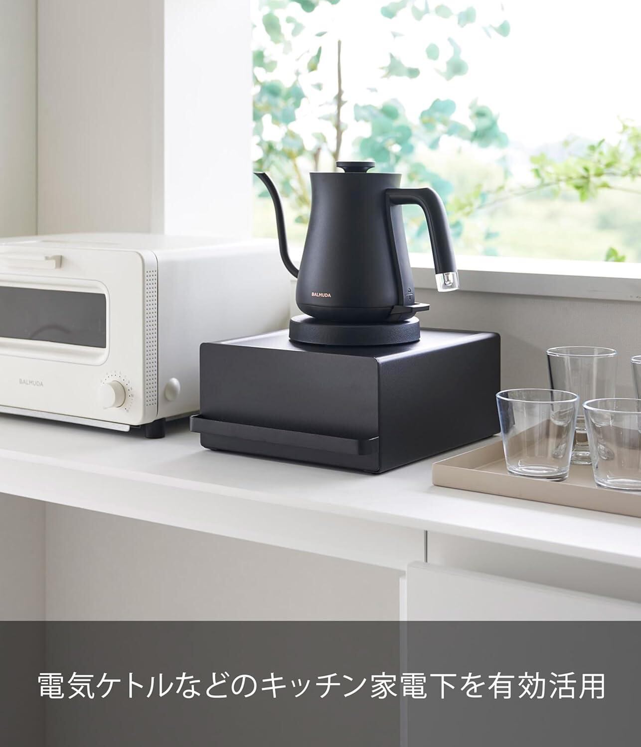 山崎実業Yamazaki 【 完成品 】 引き出し付き キッチン 家電下ラック ブラック 約W22.2×D27.5×H11.5cm取っ手含む タワー tower スライド棚 小物収納 紅茶パック収納