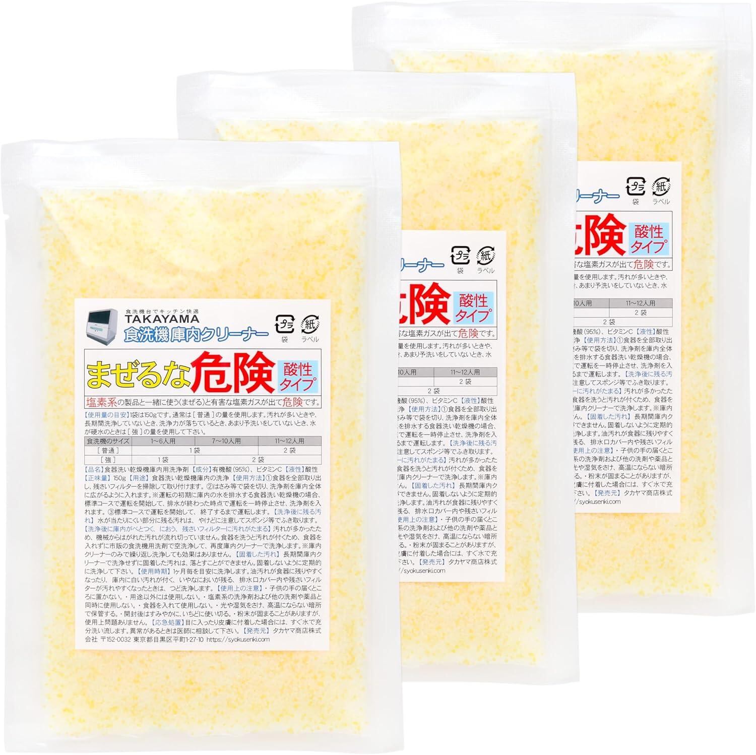x3個 Takayama 食洗機 庫内クリーナー 酸性で強力 におい・蓄積汚れに 庫内+機械を徹底洗浄 故障を予防 洗浄力の回復 パナソニック N-P300 と互換性あり 洗剤カス除去 150g