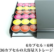 ラック部が360度回転するタワー型。1列に6個のカプセル、4列で合計24個のカプセルが収納できます。「見せる収納」でフレーバー毎に列を変えるのもおススメ。カプセルの残数も一目瞭然で買い忘れを防止します。ネスレファンケルのウェルネス抹茶、ウェルネスカフェ、ウェルネスラテのカプセルもご利用頂けます。