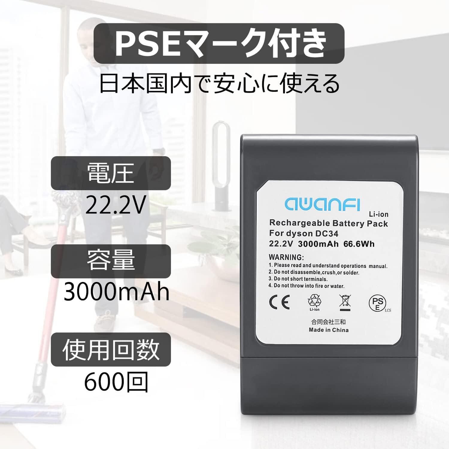 AWANFI DC34 DC35 DC45 掃除機用バッテリー【ネジ固定式 タイプB】22.2V 大容量 PSEマーク付き 互換品 【ご注意:ボタン式に使えません】