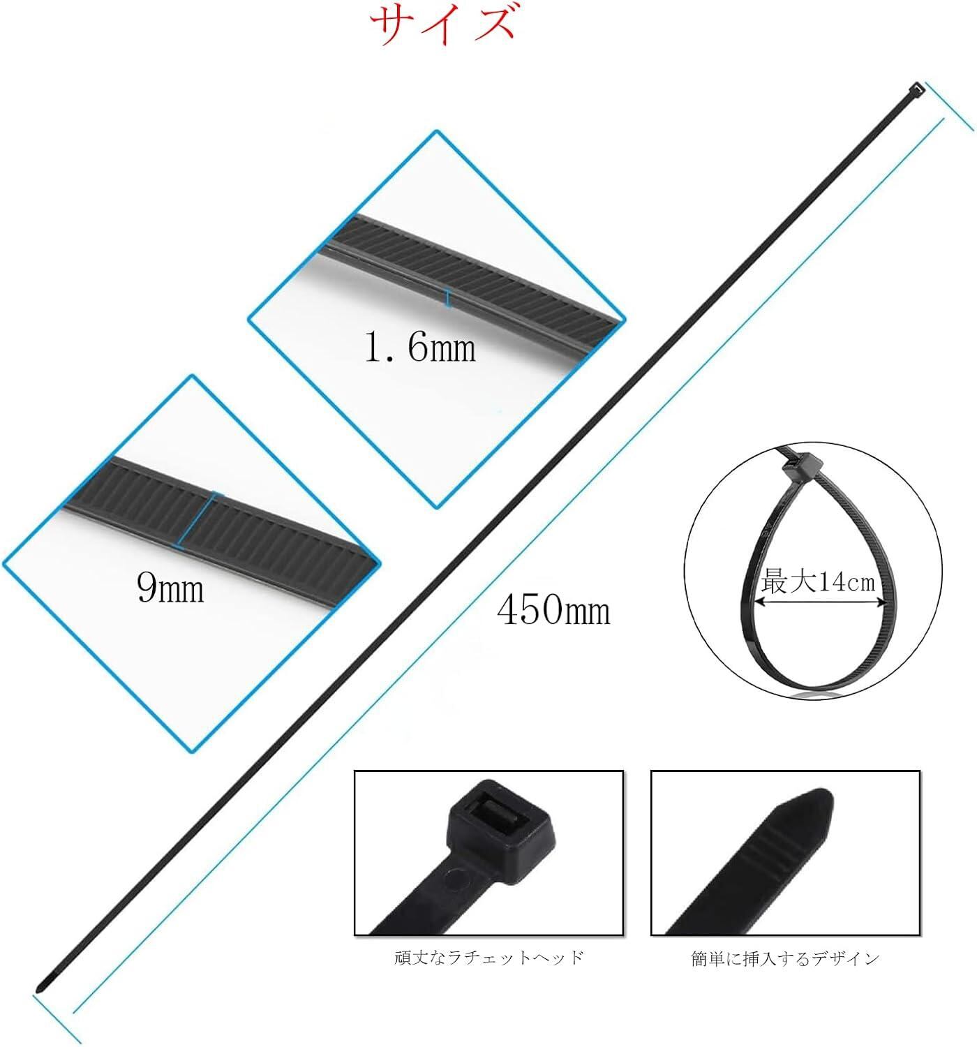 EzySup 100本結束バンド 長さ450mm 幅9mm 引張強度80kg 屋外 耐久 黒