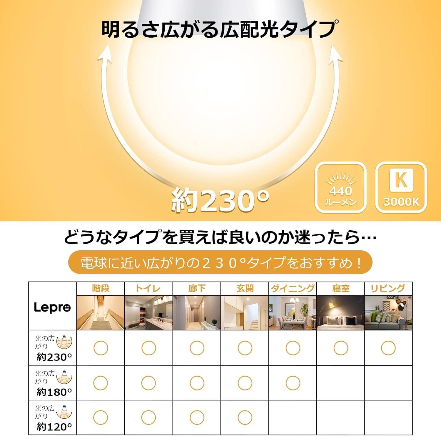 【E17】Lepro LED電球 E17口金 40W形 6個 440lm 電球色 3000K 非調光型 ミニクリプトン ミニランプ形電球 広配光タイプ 高演色性 PSE認証済み 密閉器具対応 省エネ