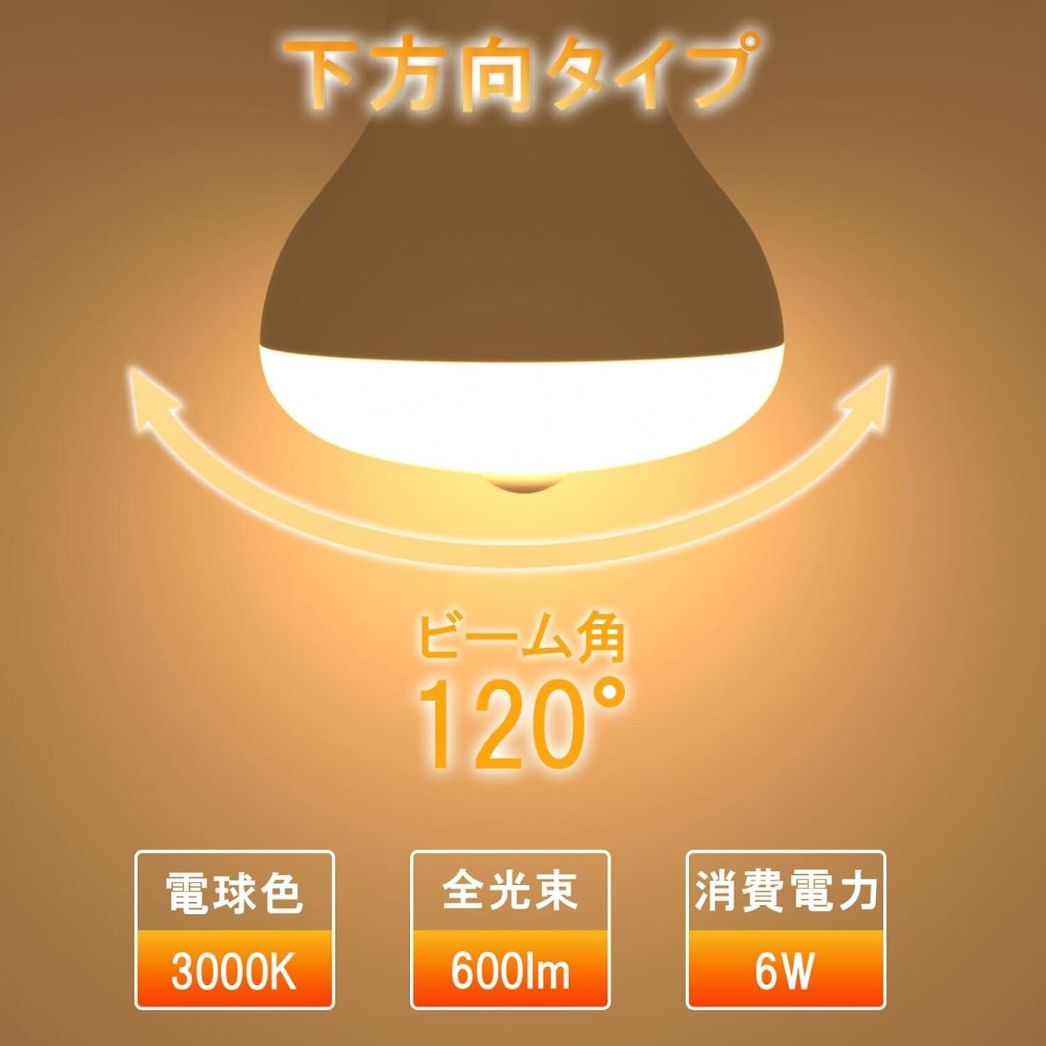 【商品仕様】 寸法:全長102mm、最大径63mm 質量:55g 定格電圧:AC100V50/60Hz 定格消費電力:6.0W 待機消費電力:0.2W 全光束:600 lm 色温度:電球色3000K 平均演色評価:Ra82 定格寿命:25000時間 口金:E26 検知角度:約120° 検知範囲:半径約2.5m
