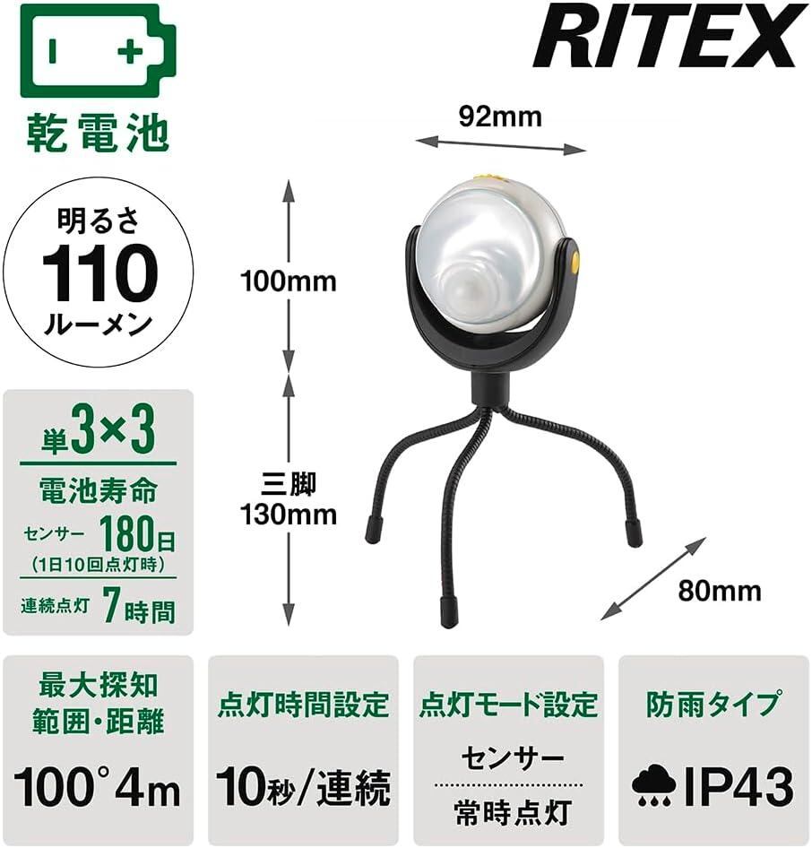 ムサシ ライテックス どこでもセンサーライト ASL-090 ブラック 幅9.2×奥行き8×高さ10cm