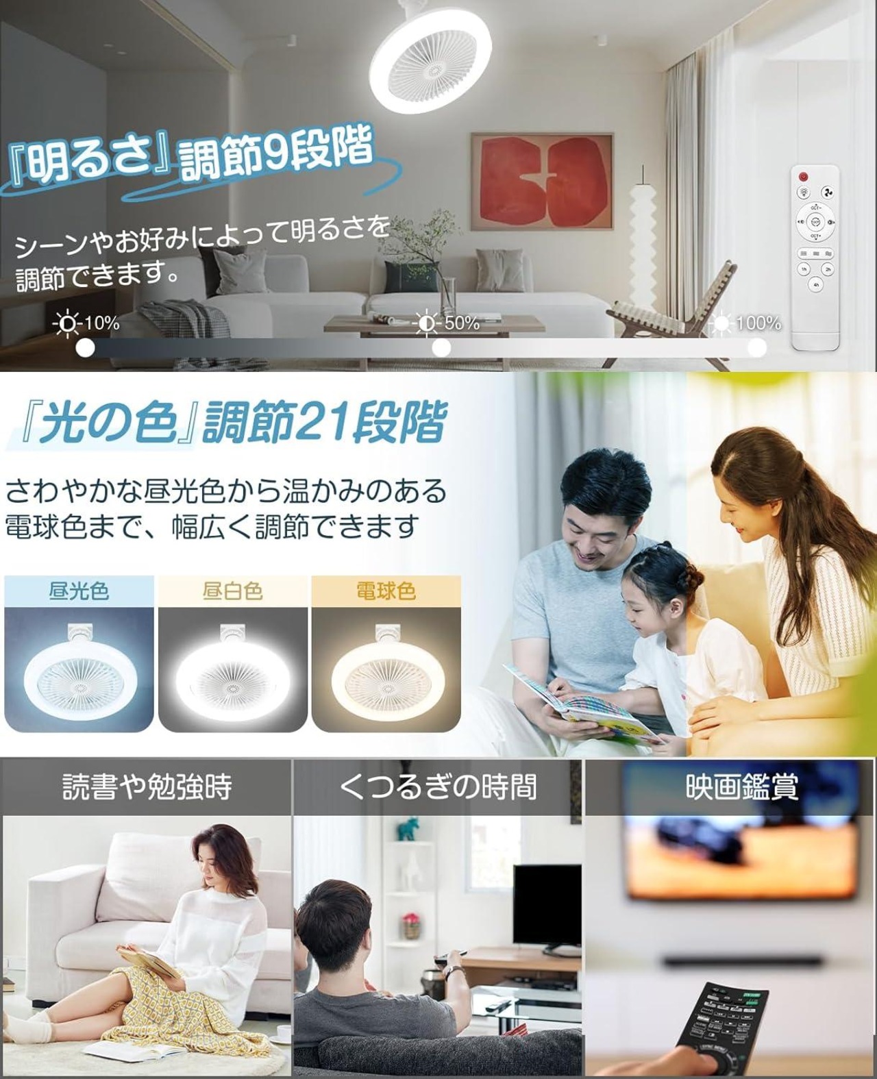 【お手入れ簡単・角度調整可能・便利なタイマー&メモリー機能】2025年最新モデルのファンライトは、昨年モデルのリモコン記憶機能に加え、新たに壁スイッチ記憶機能を追加。LEDの利便性がさらに向上しました。 タイマー機能1時間/2時間/4時間:設定時間後に自動でオフ。メモリー機能で消灯前の状態をそのまま復元可能。ご家族のライフスタイルに柔軟に対応します。 可変角度設計:ファン部分は手動で角度調整可能。設置環境に合わせて最適な風の流れを追求できます。 簡単お手入れ:取り外し可能なファンブレード設計で、日常の清掃がラクラク。