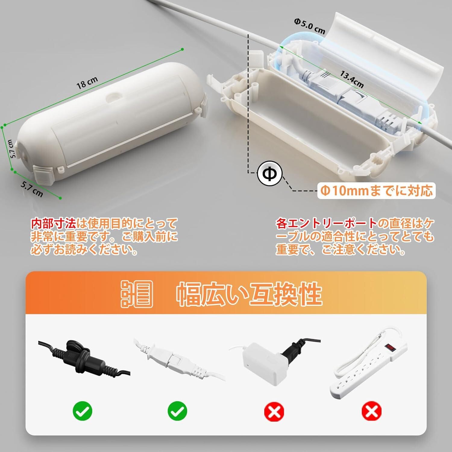 延長コード安全カバー: ロック ラッチx4、ケーブルクランプx2、取り付け穴x2、ケーブルタイx2、防水性と密閉性を確保し、屋外と屋内の電気接続を乾燥させて安全に保ちます。どこにでも簡単に設置して吊り下げられます。