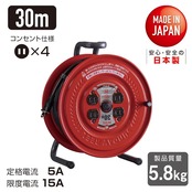 ハタヤ HATAYA コードリール 屋内用 100V型 コード30m 太さ1.25㎟ 標準型 コンセント4個 コンセント防塵キャップ 前面フラットパネル 家庭用 工場用 建設現場 サンデーリール S-