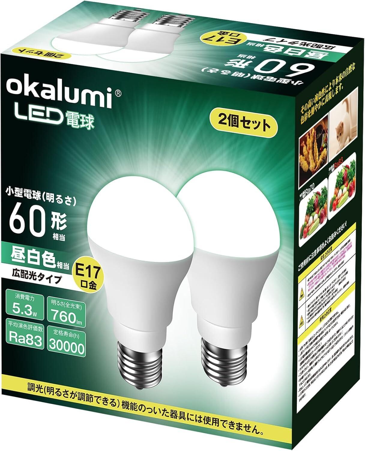 ミニクリプトン電球 LED電球 口金直径17mm 昼白色 60W形相当 広配光 2個セット 760lm 断熱材器具対応