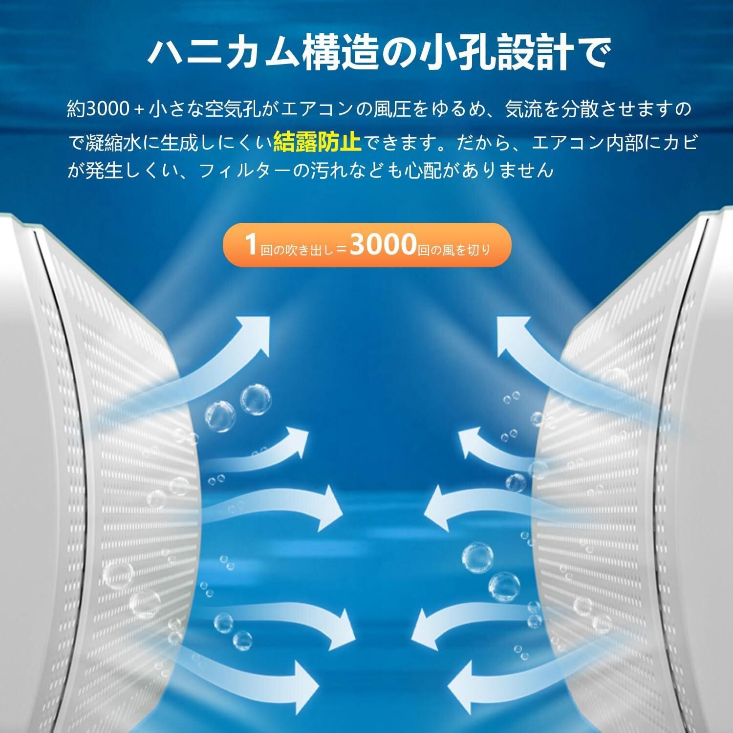 結露防止:約3000+小さな空気孔がエアコンの風圧をゆるめ、気流を分散させますので凝縮水に生成しにくい結露防止できます。だから、エアコン内部にカビが発生しくい、フィルターの汚れなども心配がありません