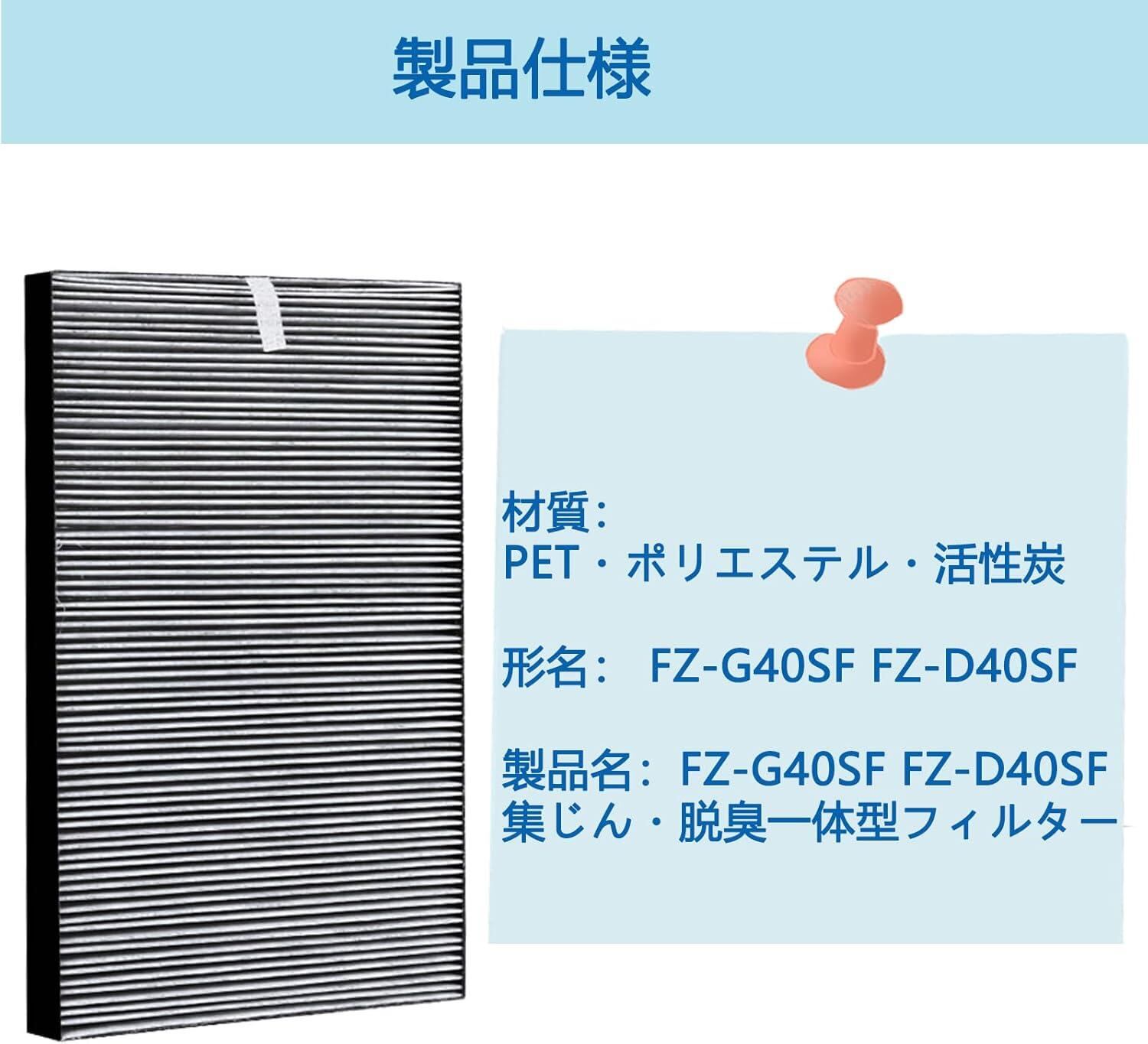 製品仕様:サイズ:約3.7×22×40cm;材質:PET・ポリエステル・活性炭;形名: FZ-G40SF FZ-D40SF。