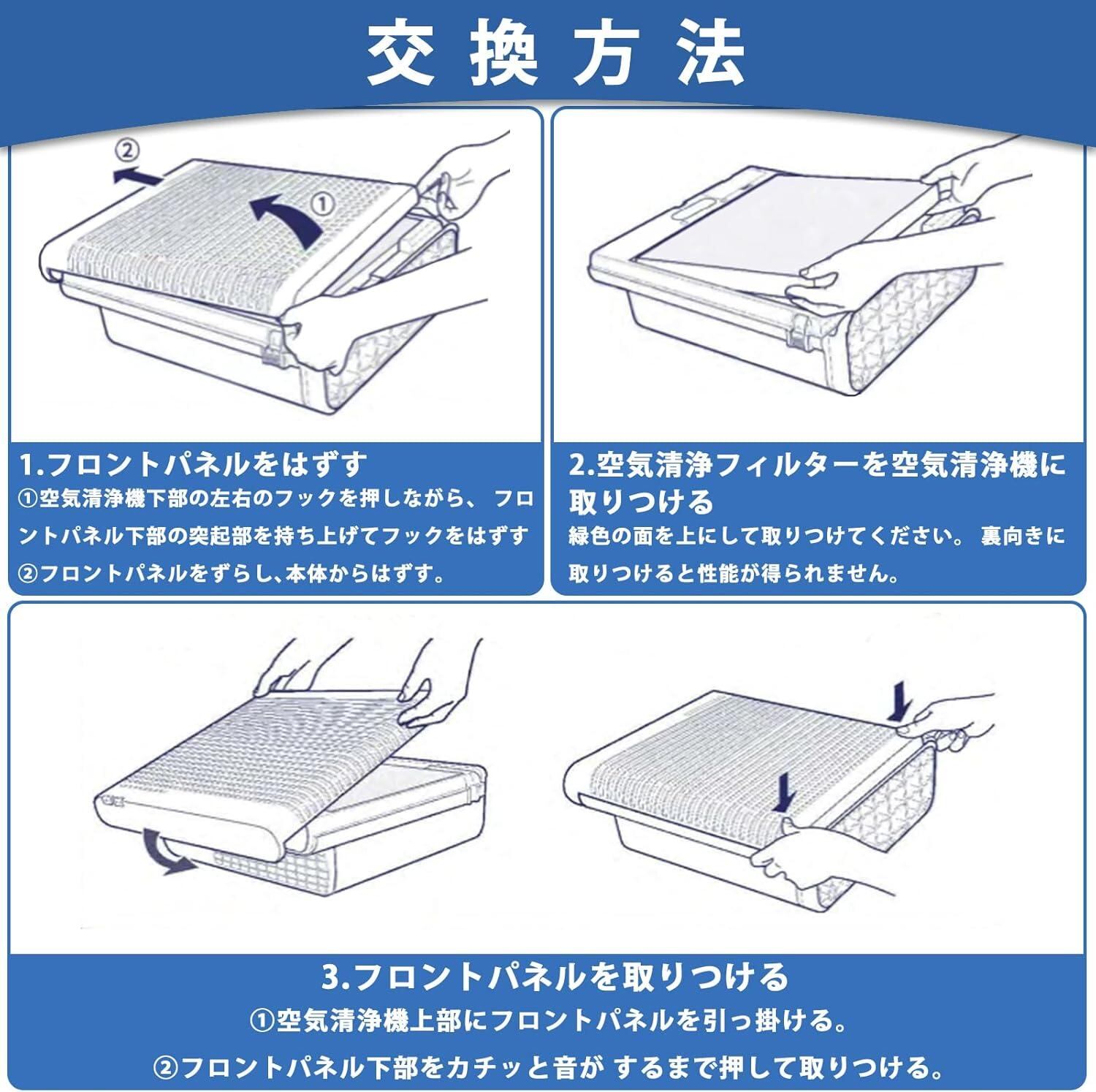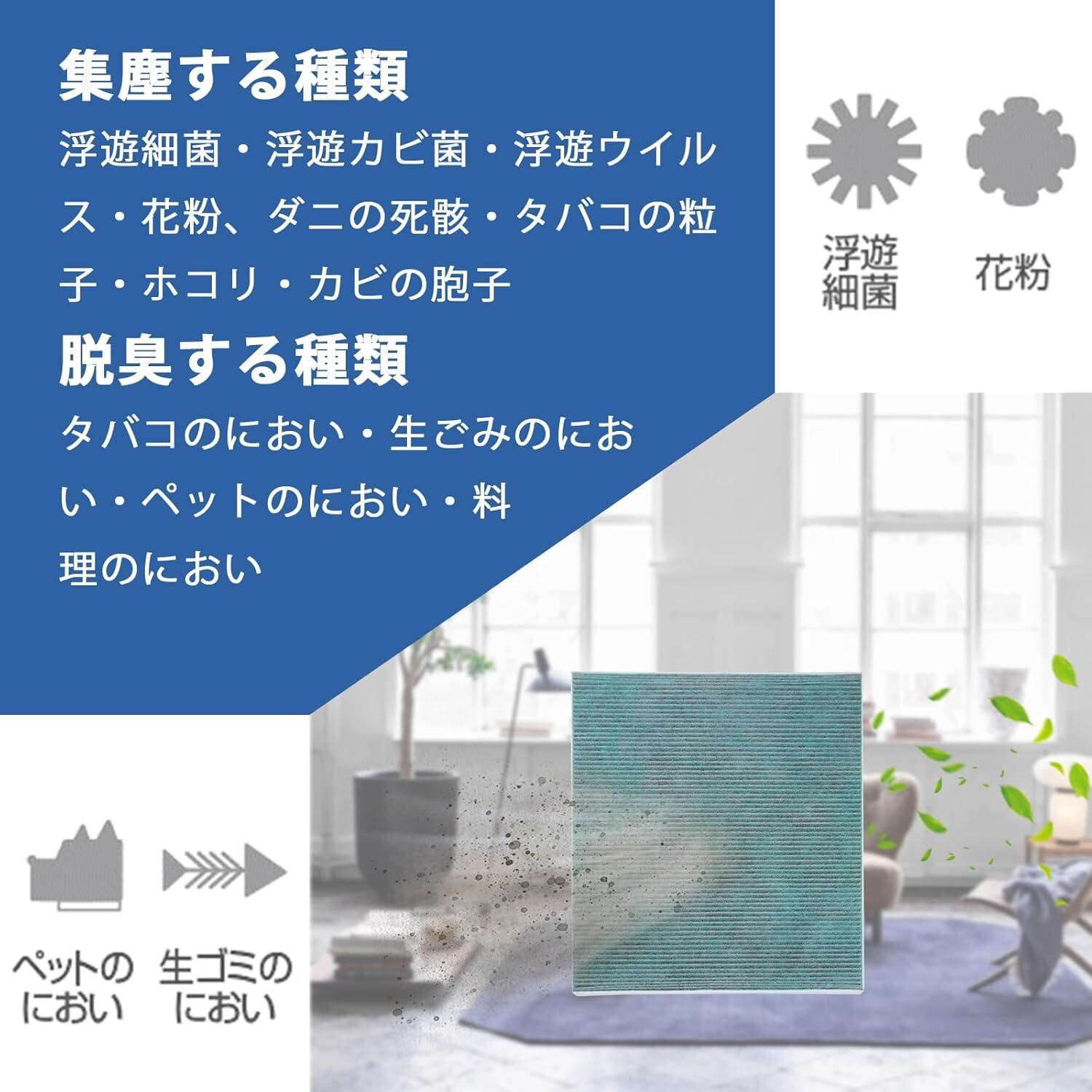 【集じん 抗菌 脱臭3イン1フィルター】このフィルターには集じん機能、脱臭機能、抗菌機能付きされており、強力な浄化効果を実現することができる。¦ |集じん機能付き:空気清浄機フィルターはホコリ、花粉、ダニの死骸をを強力吸引します。フィルターを交換したあと、風の出がよくなり、フィルターはずいぶんとホコリが詰まります。¦ |脱臭機能付き:空気清浄機フィルターはタバコの匂い、生ごみの匂い、ペットの匂い、料理の匂い、汗の匂い、トイレの臭などを吸着できます。¦ |抗菌機能付き:空気清浄機交換用フィルターは浮遊細菌、浮遊カビ菌、浮遊ウイルス、カビの胞子を吸着できます。