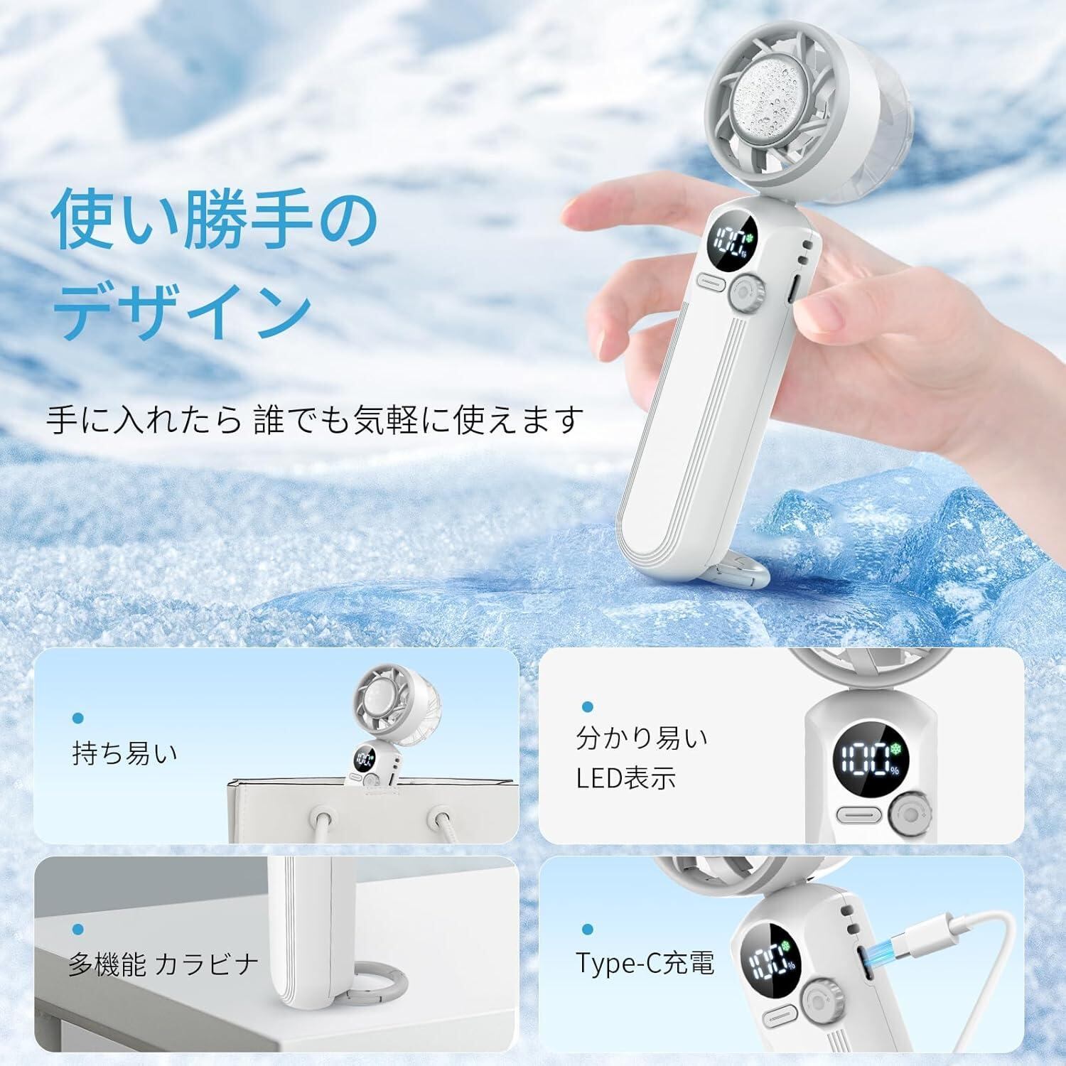 ハンディファン 冷却プレート付き 1秒冷感 100段階パワフル風量 首掛け/卓上/手持ち/腰掛け カラビナとストラップ付き 最長12h稼働 超軽量160g 携帯扇風機 小型 静音20dB 2h急速充電