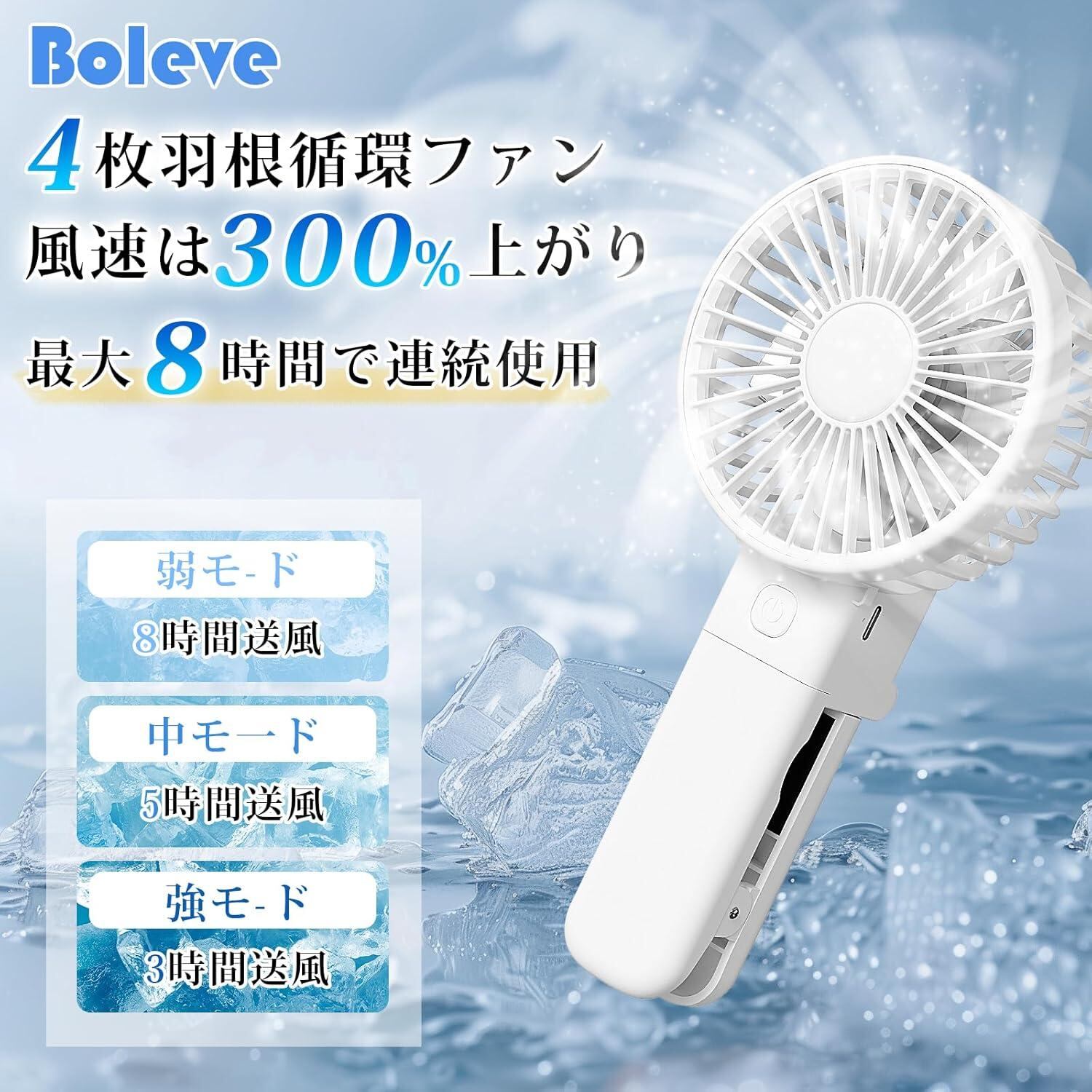 Boleve ハンディファン クリップ 日傘 携帯【2025最新設計 扇風機 大風量 静音】 150g超軽量 ハンディ 扇風機 クリップ/卓上/手持ち/首掛け対応 小型 風量3段階調整 Type-C急