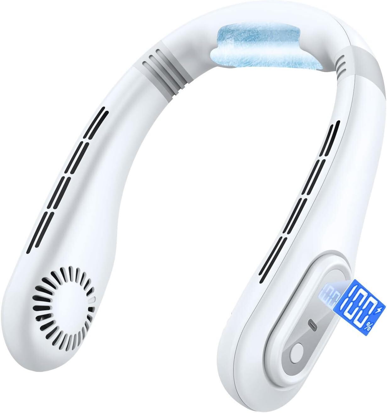 首掛け扇風機 ネッククーラー 【2025夏革新版 ネックファン&LCD液晶ディスプレイ表示】 冷感プレート付き 携帯扇風機 急速冷却 15db静音 3段階風量調整 16時間連続使用 Type-C急速充