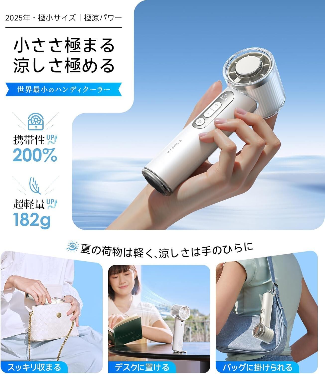 【2025最新作!業界最小サイズのハンディクーラー】2024 CESイノベーション賞受賞の超小型設計ハンディファン45×50×150mm。半導体冷却プレート搭載で、従来の手持ち扇風機より40%小型化。手のひらサイズ182gでありながら、本格的な冷房効果を実現。鞄ポケットにも収まるコンパクト設計で、通勤やアウトドアに最適。夏のファッションにも映えるおしゃれアイテムとして、熱中症対策を革新します。