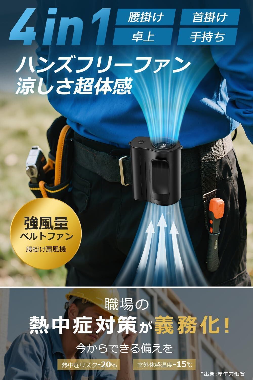 腰掛け扇風機 強力 【腰掛け/首掛け/卓上/手持ち4way 100段階大風量】 ベルトファン 8000mAh 大容量 携帯扇風機 18000RPM 超強風 最長20時間持続 ベルト扇風機 ポータブルフ