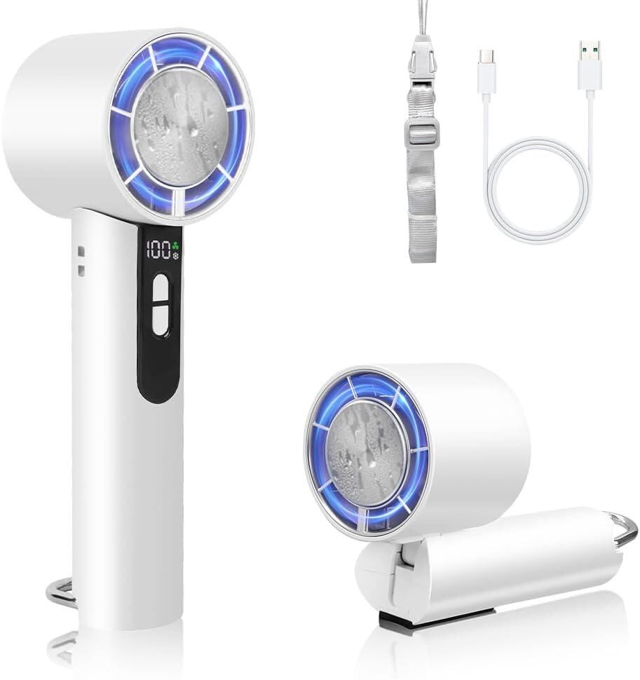 ハンディファン【2025新登場 冷却プレート付き】デジタル表示 日本製ブラシレスモーター搭載 手持ち/首掛け/卓上3in1扇風機 5000mAh大容量 100段階風量調節 強力送風 Type-C充電対