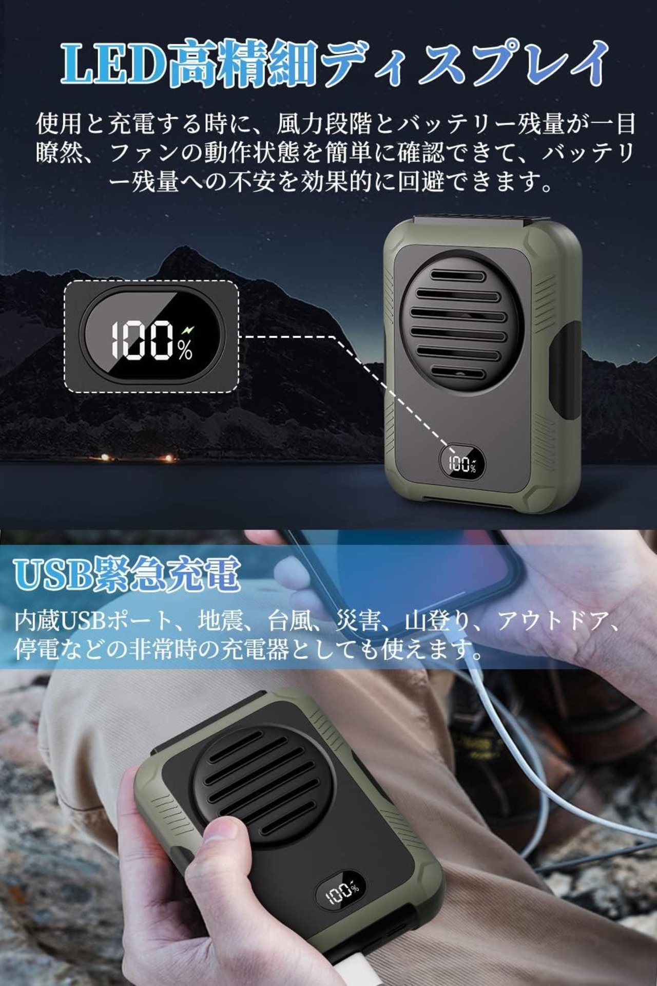 ✨【6000mAhで長時間連続使用可能】6000mAhの大容量バッテリーを搭載され、長時間の連続使用、Type-C急速充電、満充電から約10時間の連続稼働が可能です 風力階級1:10時間、 風力階級2:6時間、 風力階級3:3時間。 PCB回路の安全設計により、電子機器の温度を効果的に下げます。 長時間使用しても、電力不足や機器のショートなどの安全上の心配がありません。