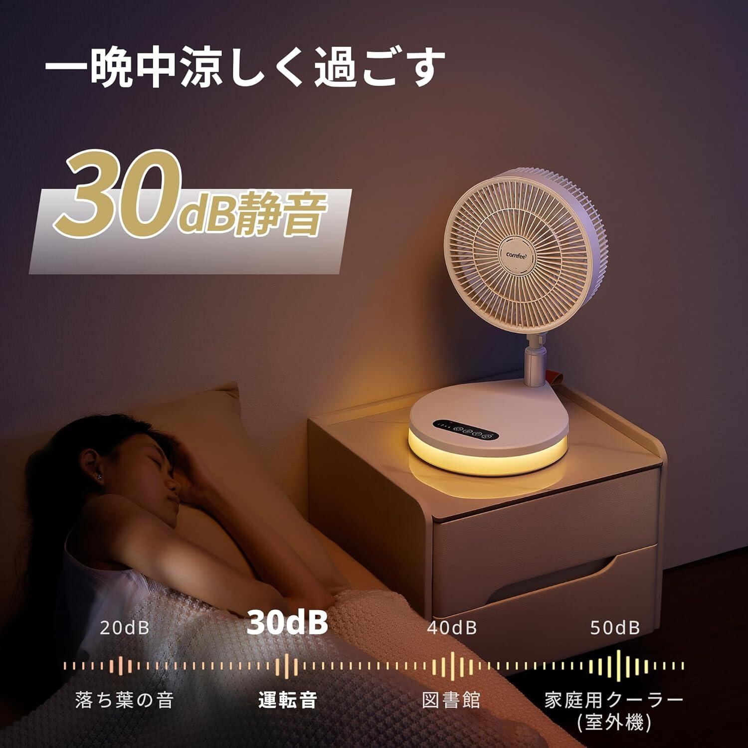 COMFEE' 扇風機 DCモーター 折り畳み 8000mAh電池 USB充電式 コードレス 静音 左右自動首振り 上下角度調節 サーキュレーター 兼用 風量4段階調節 1~10h タイマー 最大20