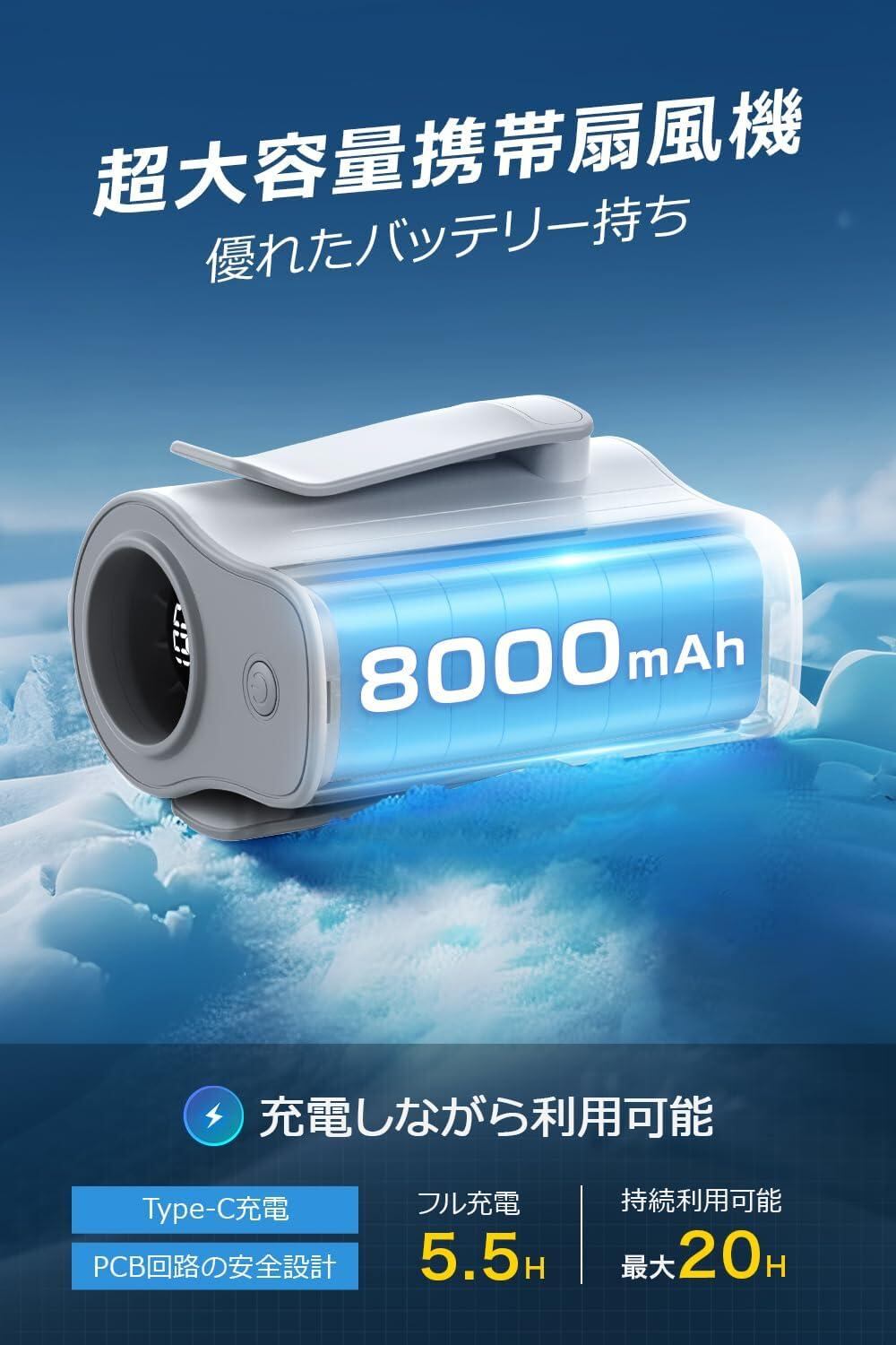 腰掛けファン 携帯扇風機 【8000mAh大容量 腰掛け/首掛け/手持ち/卓上4WAY】 腰掛け扇風機 小型 強力 18000RPM 超大風量 100段階風力 20時間持続 ベルトファン 182g 軽