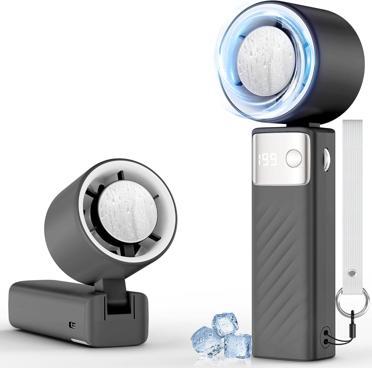 ハンディファン【2025新登場 -20℃瞬間冷却】,扇風機 ハンディ冷感プレート付き 1-199段階風量調整 7枚羽根 20時間連続冷却 5400mAh大容量バッテリー Type-C充電 LEDパワー