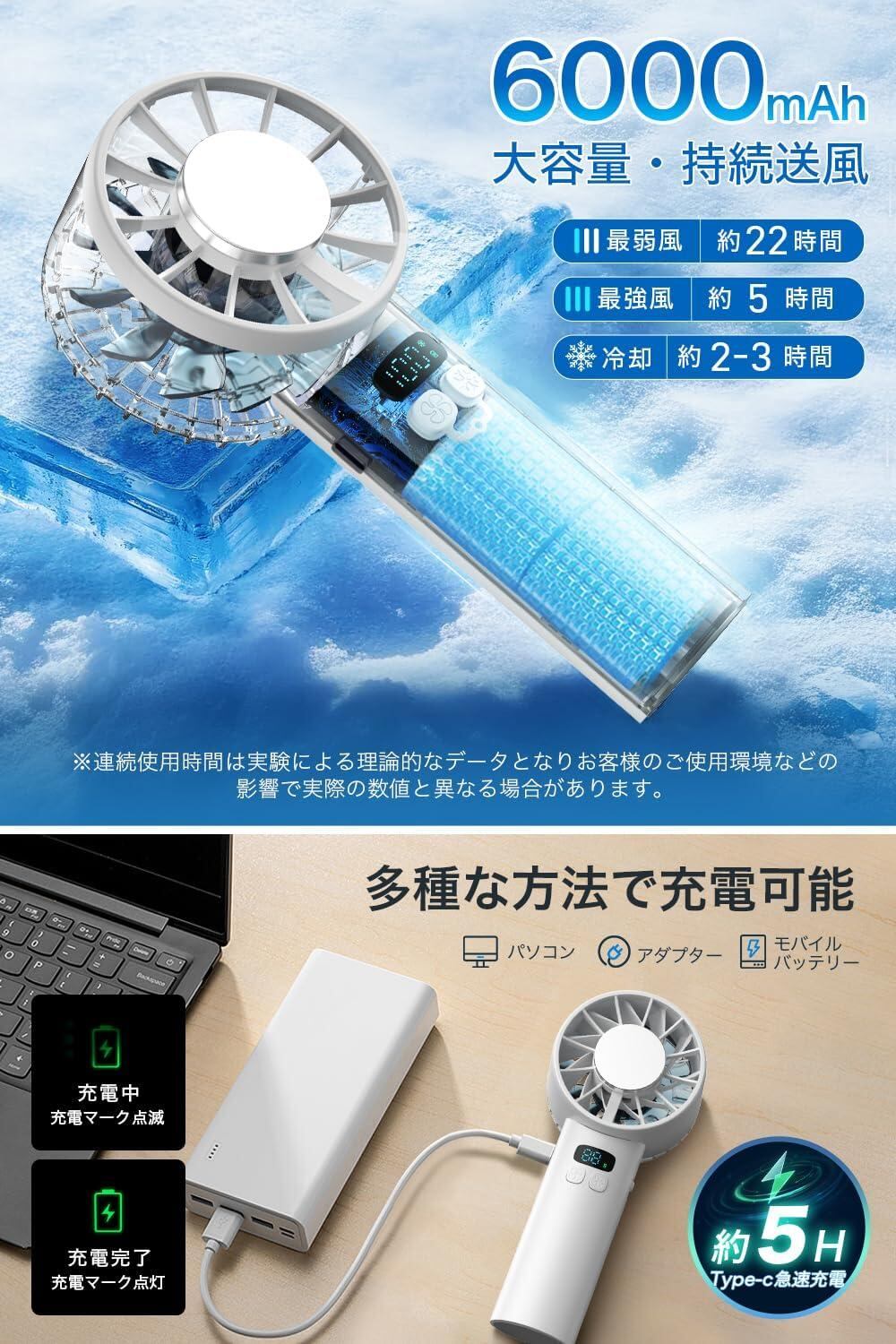 【2025夏新登場 100階段暴風】携帯扇風機 冷却プレート ハンディファン 6000mAh大容量 強力 大風量 静音 1秒冷感 手持ち扇風機 接触冷感 クーラー機能 卓上扇風機 Type-C急速充電