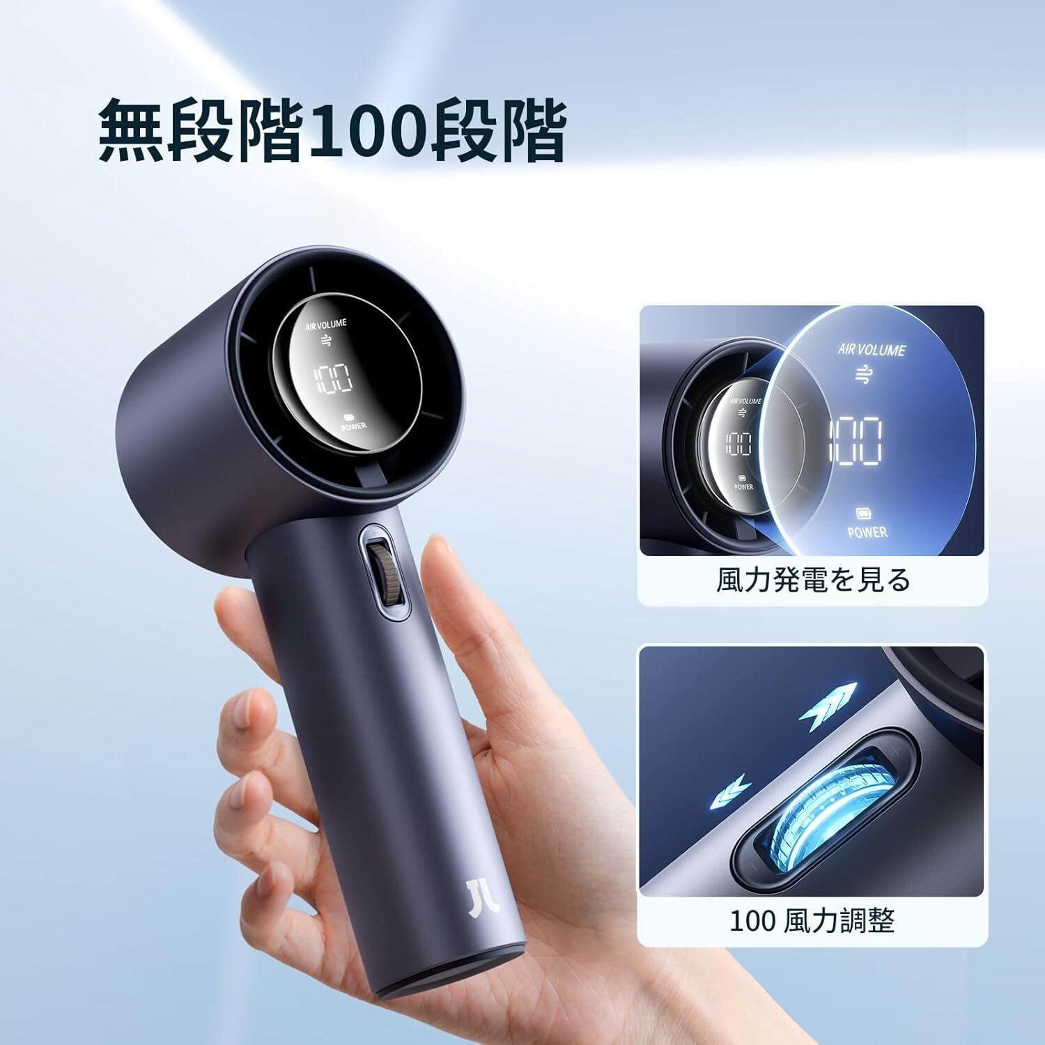 JISULIFE ハンディ扇風機 携帯扇風機 小型 卓上 USB充電式 3600mAh大容量バッテリー 最大12時間動作 ミニ 手持ち 1-100段階風量調節 強風 LEDデジタル表示 超軽量 静音