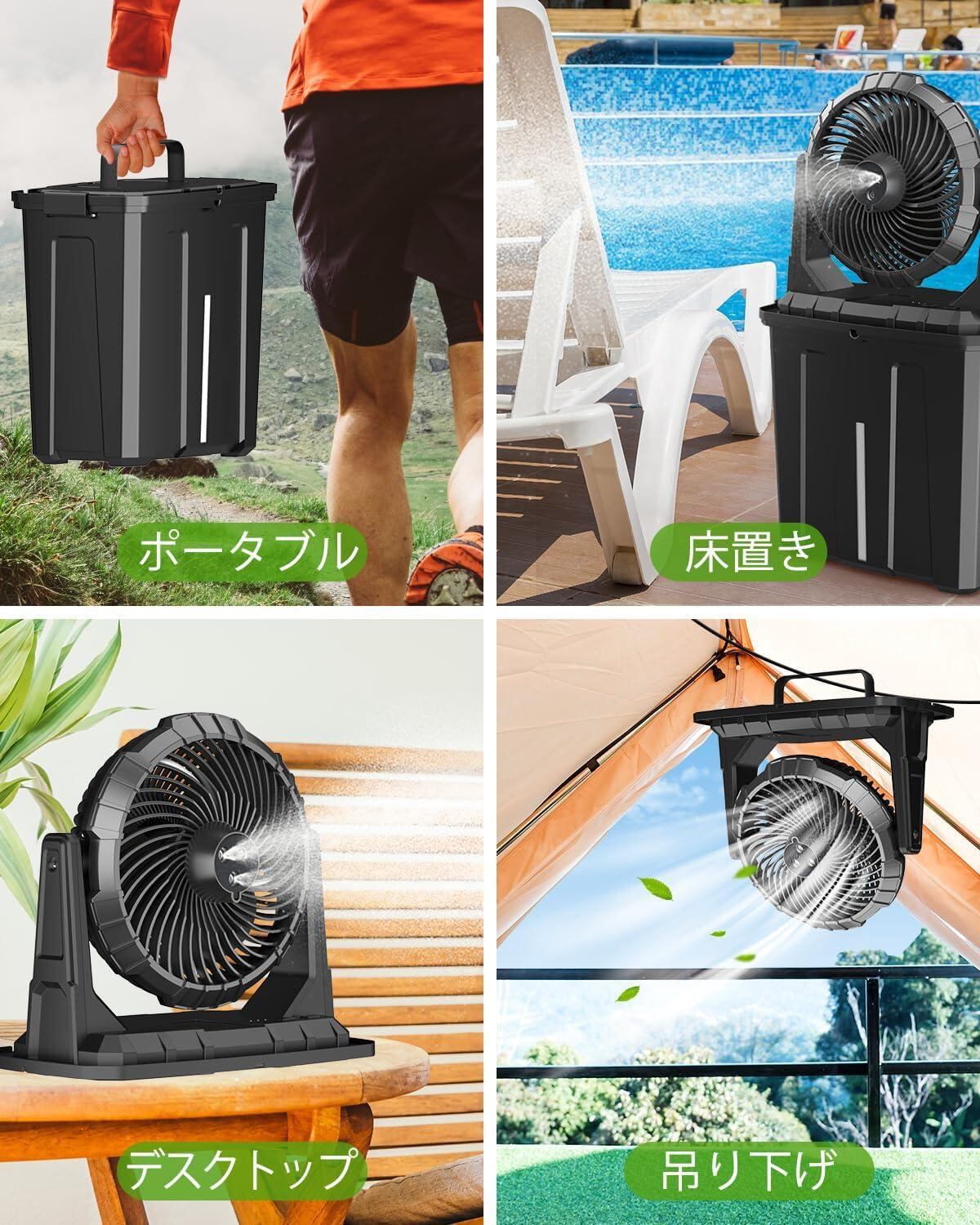 Ausic キャンプ 扇風機 ミストファン 風量3段階調節 20000mAh 大容量バッテリー ミスト噴霧機能 瞬间冷却 9L水タンク 卓上扇風機 角度調整可能 静音 強力送風コードレス USB充電式