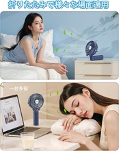 【手持ち&卓上置き両用】携帯扇風機は同時に手持ち、折畳みの機能を備えています、片手でも使用できます。長い持ち手の設計で手持もとても便利です。いつでもどこでも涼しさを楽しむことができます。オフィス アウトドア用をオススメします。卓上に置いて使う際に、角度は自由に設定できて非常に便利です。