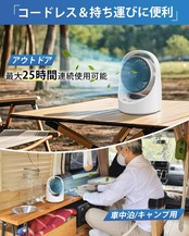 【サーキュレーター扇風機兼用&大容量バッテリー&アウトドア対応】サーキュレーターが大容量5200mAh内蔵バッテリーで、最大25時間※フル充電で弱モード時の連続使用が可能風量設定により異なります。充電式サーキュレーターなので、夏場のキャンプと暑さが厳しい日には、熱中症対策に役立つ。地震や停電時でもコード不要で室内換気、空気循環をサポートします。更に、ライト付きで、夜間の寝室やアウトドアでの明かりとしても活用可能。「★★★ご注意:充電の際、必ずDC5V/2Aの充電器別売りを使ってください。充電しながら使用は可能ですが、充電の際、風量が少し弱くなりかもしれません、これは正常です、気になる場合、満充電してから使用してください。