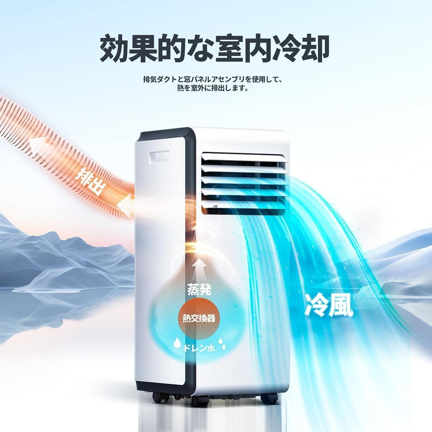 ZAFRO スポットクーラー 家庭用 冷房 6畳 8畳【2025最新型】小型ポータブルクーラー 窓パネル【除湿搭載 工事不要】スポットエアコン 業務用 静音 移動式 冷風機 24Hタイマー 排熱ダクト
