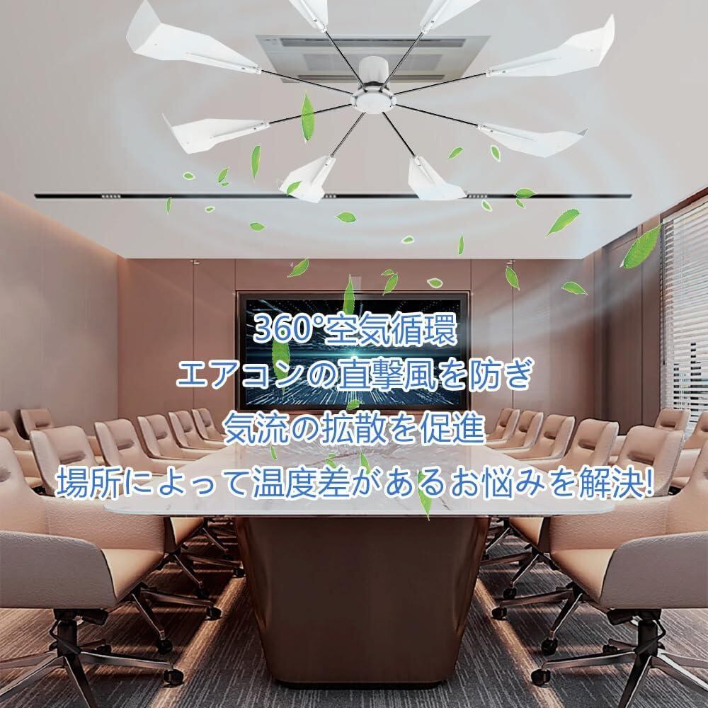 【360°空気循環】シーリングファンとエアディフレクターの組み合わせは、エアコンからの風が直接当たるのを防ぐだけでなく、空気を360°循環させます。部屋全体を快適な空気でカバー。室温のバランスを効果的に整え、空気の循環を良くします。効率的な空気循環により、快適な空間温度を保ちます。 一年中快適です!