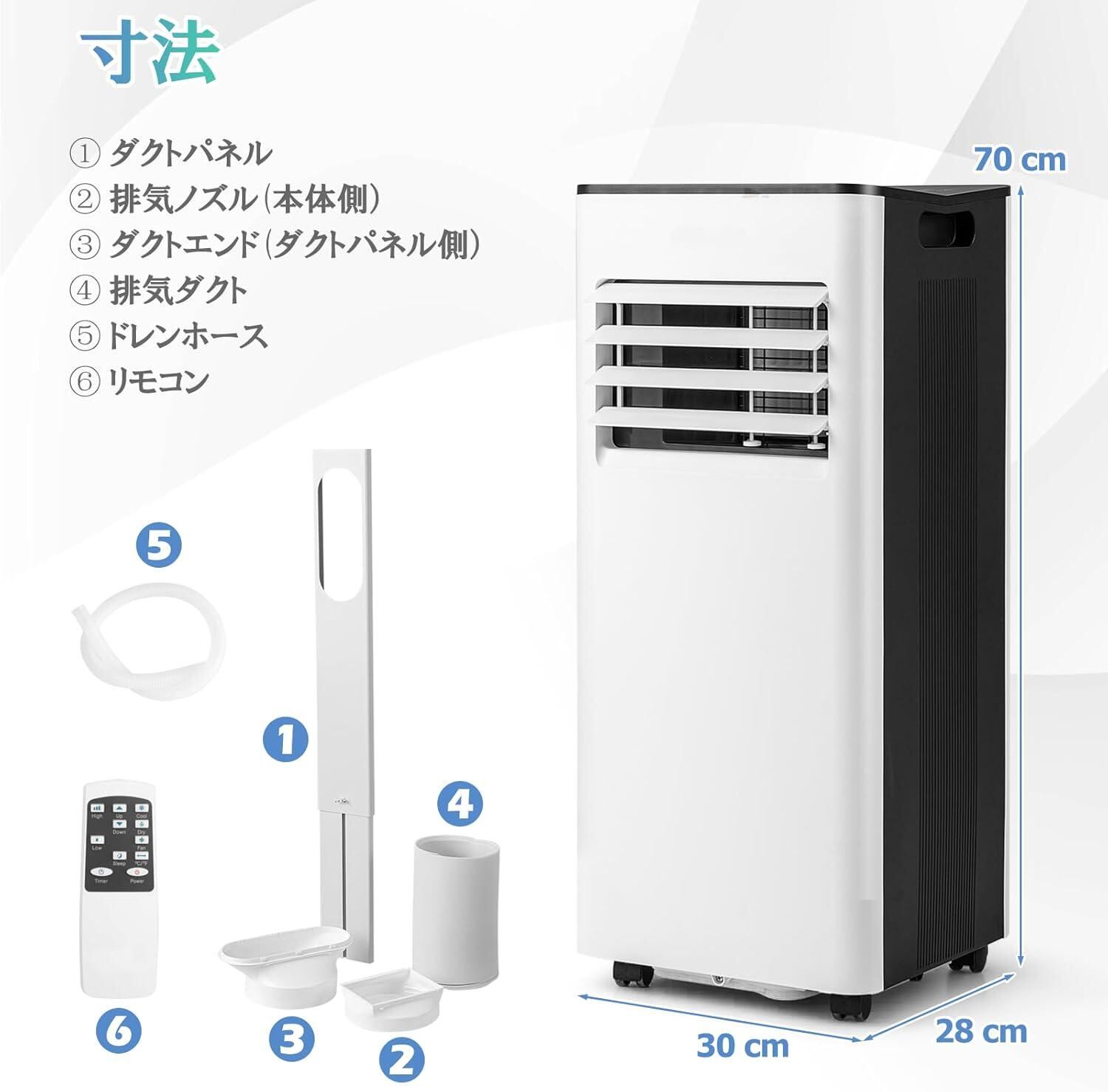 【詳細】モード:冷風、除湿、送風/風量:2段階調節/定格電圧:AC100V 50/60Hz/定格消費電力:640W50Hz/730W60Hz/冷媒:R410A/稼働音:53dB【設定温度範囲】16°~32°【容量/冷却力】1.8kW-2.0kW