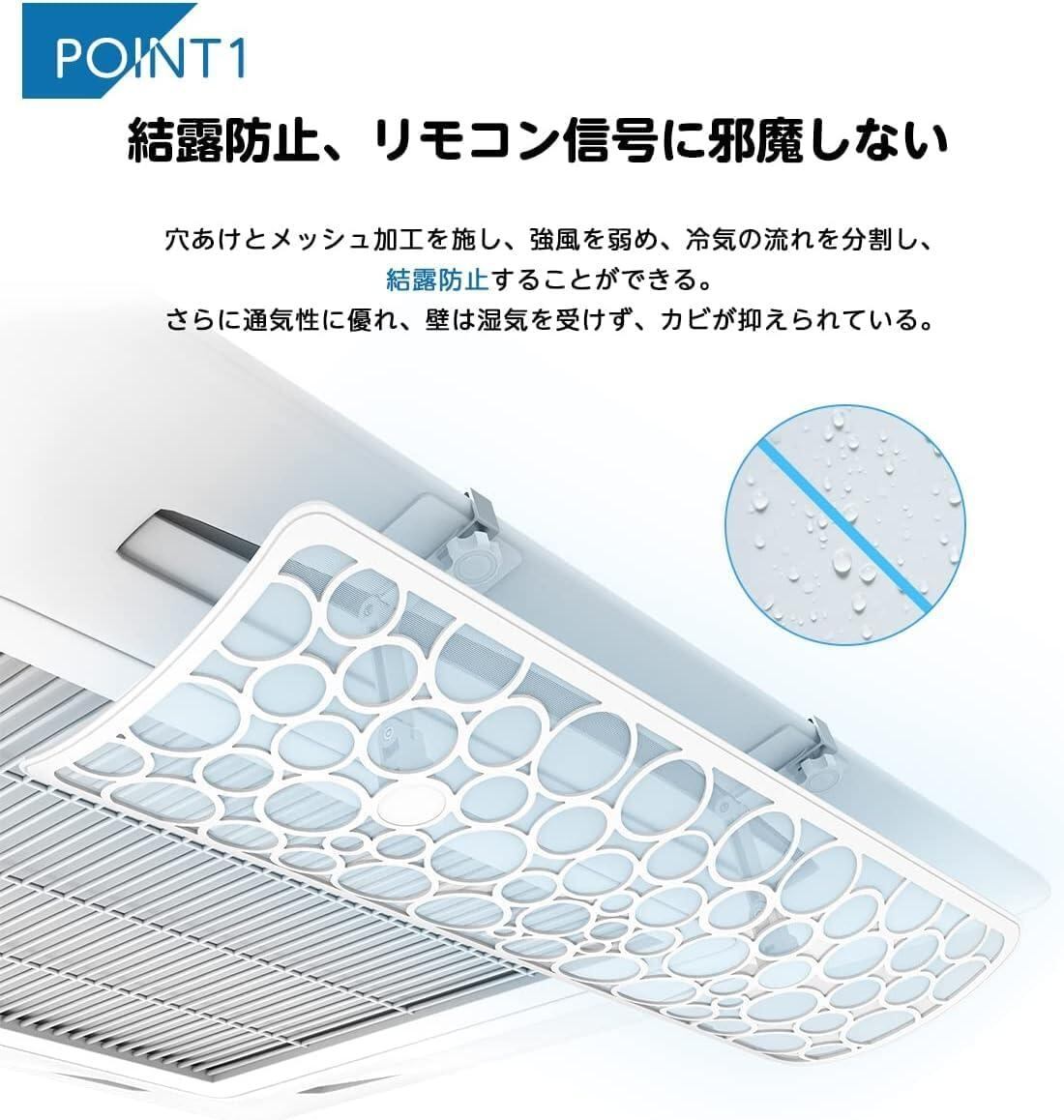 【結露防止★天井エアコン 風よけ】AutoGo 天井エアコン 風よけは、穴あけとメッシュ加工を施すことで、強風を弱め、冷気の流れを分割し、結露防止することができます。通気性にも優れ、壁は湿気を受けず、カビが抑えられるため、清潔で健康的な室内環境を実現します。また、リモコン信号にも邪魔をしないので、快適な使用感を保つことができます。
